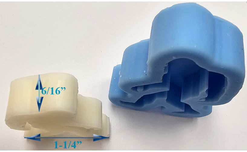 • Mold measures  ~2" (5.1cm) Tall x 1-3/4" (4.5cm) Wide x 1/2" (1.3cm) Deep
